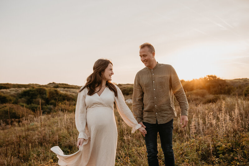 Een zwangerschapsshoot plan ik gemiddeld tussen de 30 en 35 weken zwangerschap in, afhankelijk van hoe je je fysiek voelt en wat je eigen voorkeur heeft. Wil je graag shooten op een buiten locatie en ben je uitgerekend in het najaar of de winter? Dan is het goed om rekening te houden met het feit dat we de shoot wellicht moeten uitstelling i.v.m. slecht weer. Plan de shoot daarom niet te laat, je weet nooit hoeveel haast jullie baby heeft. Om er zeker van te zijn dat ik voldoende ruimte heb in mijn agenda, raad ik aan om uiterlijk 2-3 maanden van tevoren een plekje te reserveren. Goed om te weten; in de zomermaanden is mijn agenda altijd erg snel gevuld.